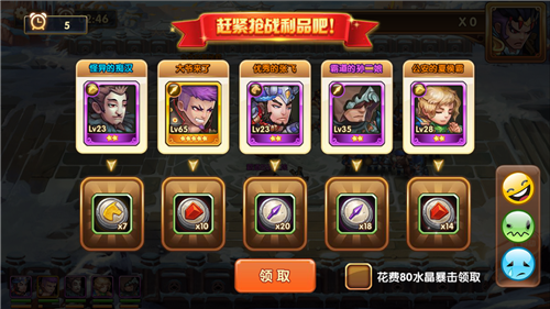 随着玩家升级,将有不同的世界BOSS等着玩家们挑战,玩家可以通过组队的方式来和朋友一起击杀他们,击杀BOSS以后,玩家可以自由翻牌,抽取奖励!各大BOSS依据难度系数掉落不同的兵符匣和各类兵种的兵符,可助玩家升级兵种,强化战力。