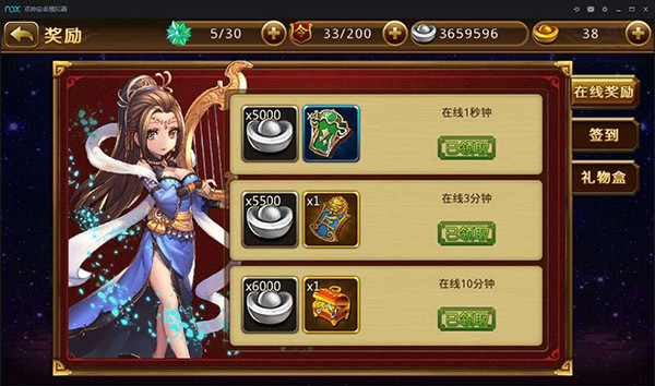 登入奖励,每日签到:顾名思义,每日登入后可领取一些日常资源,然后每日签到可领取对应奖励,累计签到还会获得额外奖励。在线奖励,赋税:每日在线达到一定时长即可领取对应的奖励,奖励不算多,但免费的别错过。然后每天赋税强征若干次获取大量银两,暴击数额更多,每日必做。