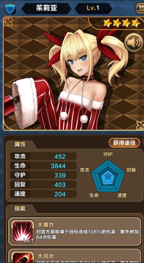 穿着圣诞短裙的茱莉亚的绝技是爆破,但是她可不是一个DPS哦~而是让人安心的铁卫,作为四星卡牌,入手也十分简单!