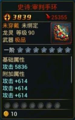 | 武器名称 | 史诗审判手环 | 等级 | 90 |