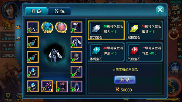 玩家在激活特定宝石之后,可以对宝石进行升级和淬炼,以提升自己角色的属性值。