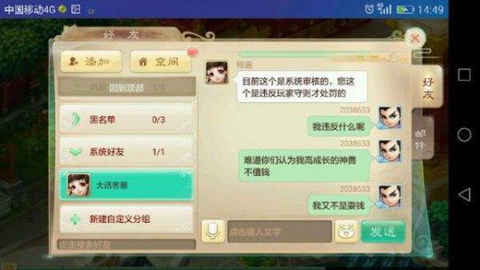 继续找GM,GM用无数的原则,违规告诉我,想让我明白是我违规,但是我哪里违规,我问客服你们是否怀疑我在刷钱。。