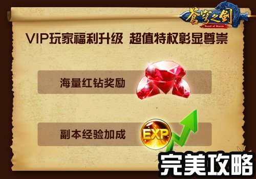 除以上四大福利玩法外,「苍穹之剑3D」新版还为VIP玩家们准备了给力福利。游戏不仅对VIP玩家的福利进行了大幅升级,还为VIP玩家们提供了副本经验加成等多项全新特权。尊享特权,成为夺宝大赢家,非你莫属!