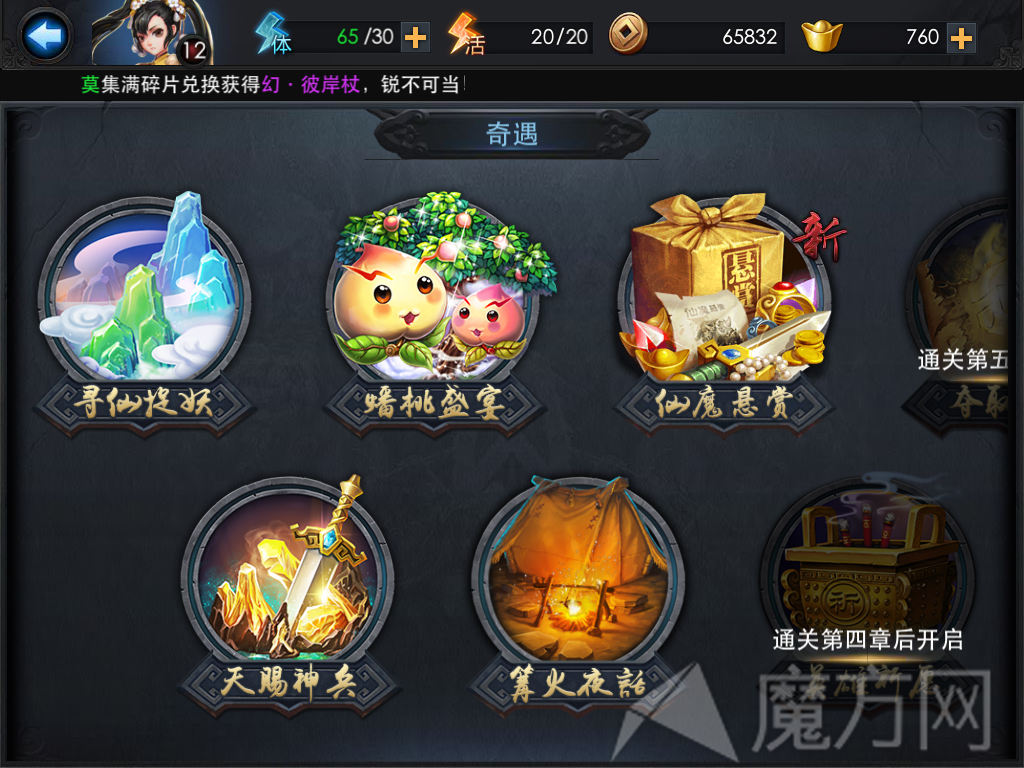 首先给大家带来奇遇系统的页面分为好多章节。