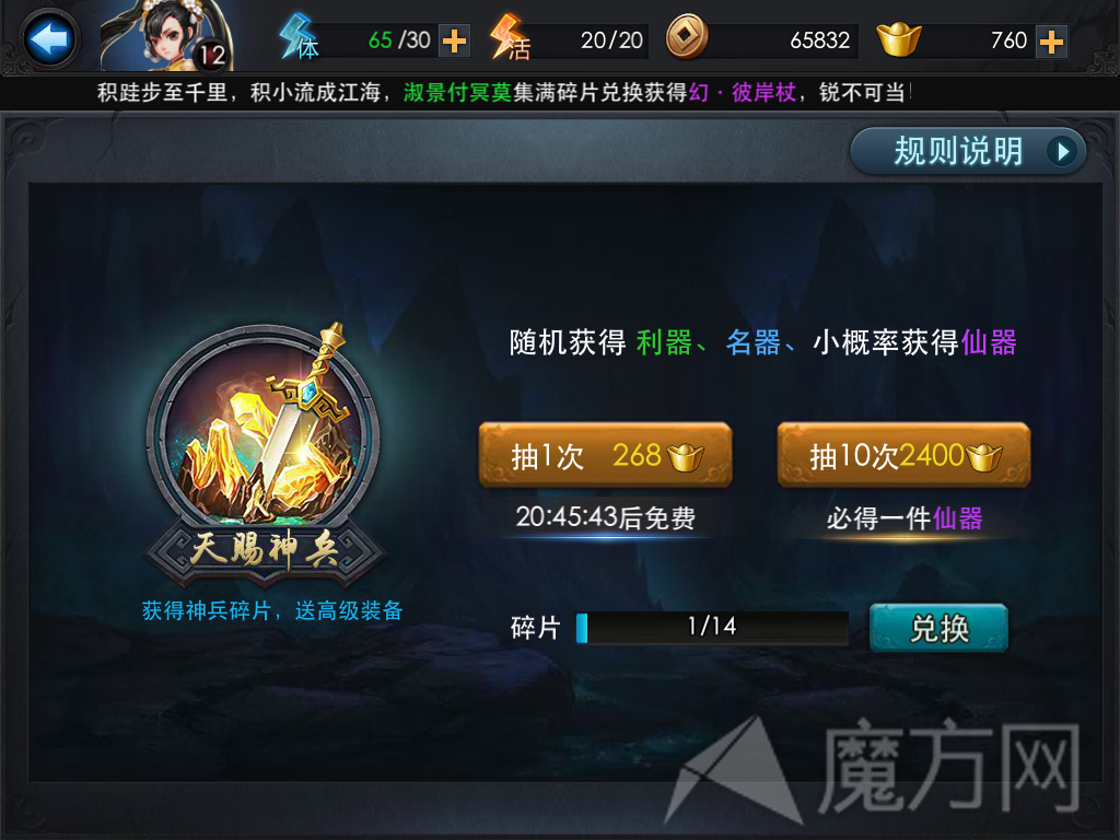 获得神兵碎片可以收集兑换神器。