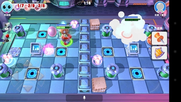 机械模式的玩法与普通玩法有比较大的区别,但是基础操作同样是方向键控制移动,点击屏幕右方放糖泡。 区别是在机械模式下,糖泡是扔到远处的,而且机械模式中,地图中间一定有一条不可穿越的河流。 玩..