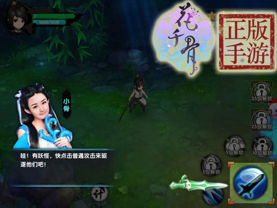 进入游戏过后,你会看到一名蓝衣女神做为新手引导教你玩游戏哟。这个女神是谁呢?没错,这个女神就是《花千骨》手游形象代言人赵丽颖。大家可以根据赵丽颖女神的新手引导进行操作呢。
