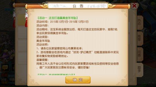 近期的维护公告中有这么一则信息可谓吊足了玩家的胃口:活动期间,法宝系统全服放出后,每天打造法宝的玩家中,有机会获得黄金羊吊坠。小春脸黑,黄金羊我就自动跳过,但是这个法宝系统却让我有那么一点欲罢不能的感觉!