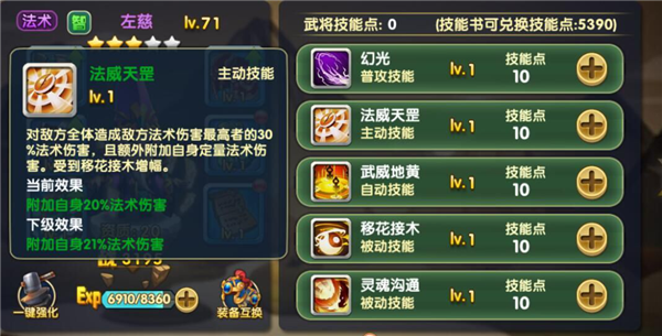 “移花接木”是左慈技能的特色,它的特点是能吸收敌方的攻击伤害,按百分比返还给对方,对敌方多名武将造成伤害。如果左慈能稳站前排,对方受到的反伤伤害也不容小视。