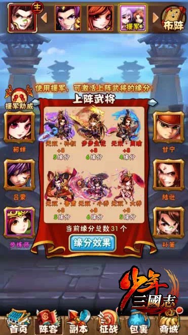 此阵容无吕蒙,无太史慈,前期省下不少元宝,可以辅助培养甘宁和孙策。