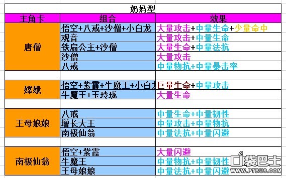奶妈阵容主角卡:唐僧、嫦娥、王母娘娘、南极仙翁