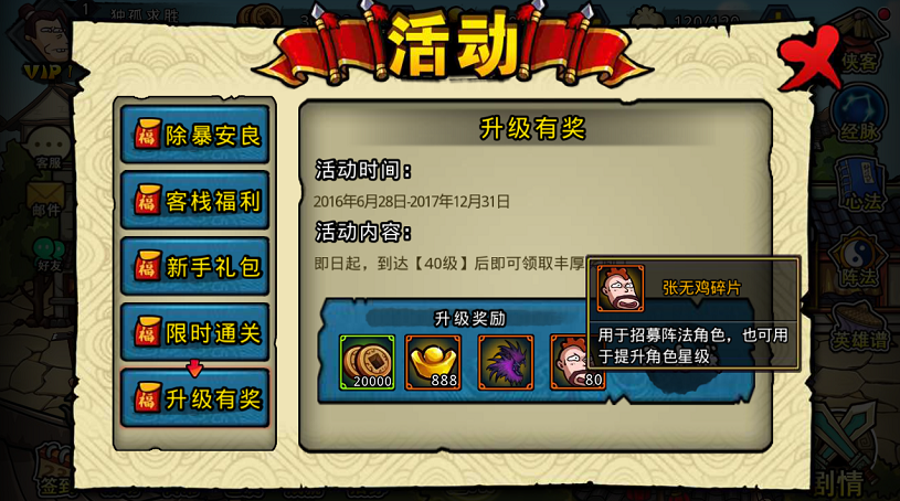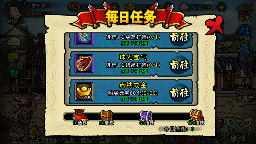 完成日常和成就,元宝、材料、侠客领不停,购买极品材料打造顶级神装!你的未来不是梦!