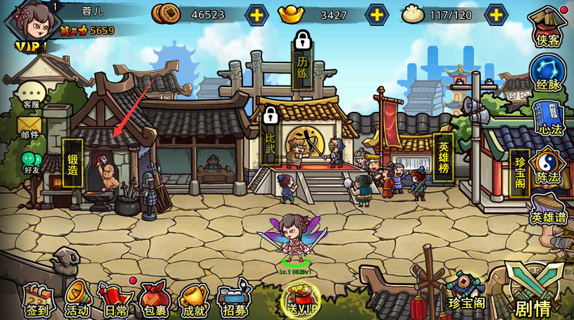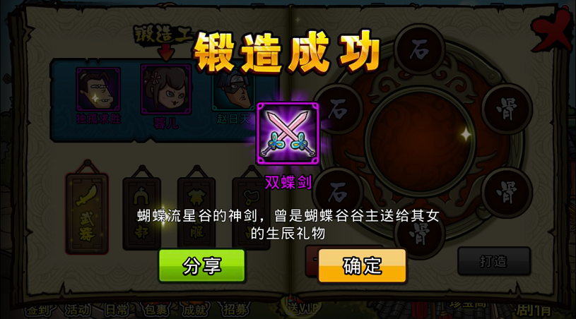 如上图所见,点击那个光膀子秀肌肉的壮汉,只要你付给他一些铜钱,他就会帮你打造你想要的任何装备。