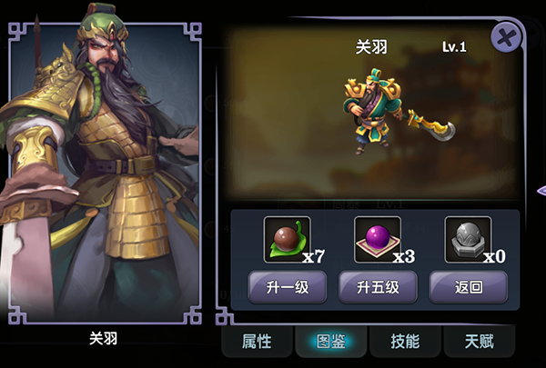 武将升级:武将在战斗结束后会获得小部分经验,武将升级所需大部分经验还是得靠使用经验丹道具获得,武将升级后会获得属性提升,武将等级最高不得超过当前雕像的等级。