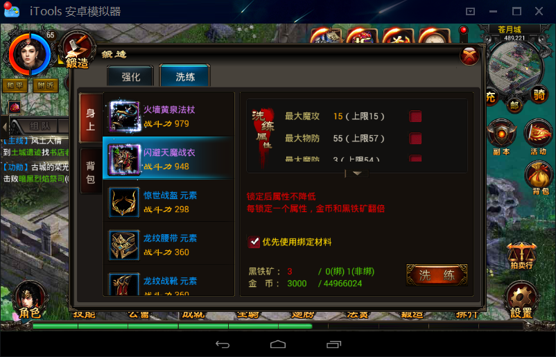 游戏中还可以对高等级的装备进行洗练,洗练可以有效提升角色战斗力。