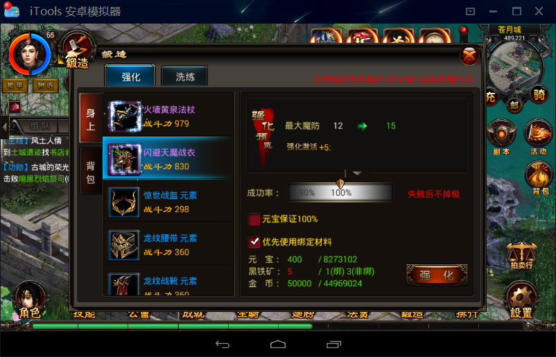 戏中的高等级装备都可以进行强化,强化可以快速提升角色的战斗力。