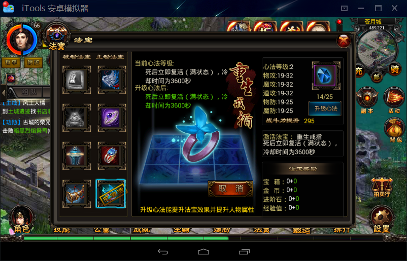 点击系统功能界面中的“法宝”按钮,进入法宝系统界面。