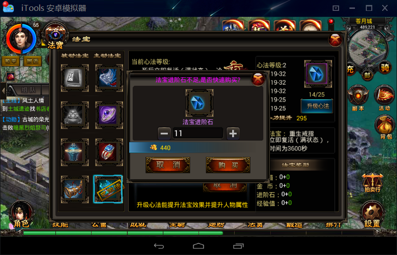 点击“进阶”即可升级法宝。