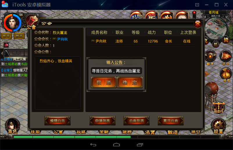 想要组建公会的高手,只要你等级达到10级,手握公会令牌,点击“创建公会”即可。