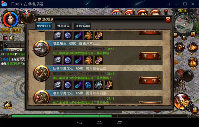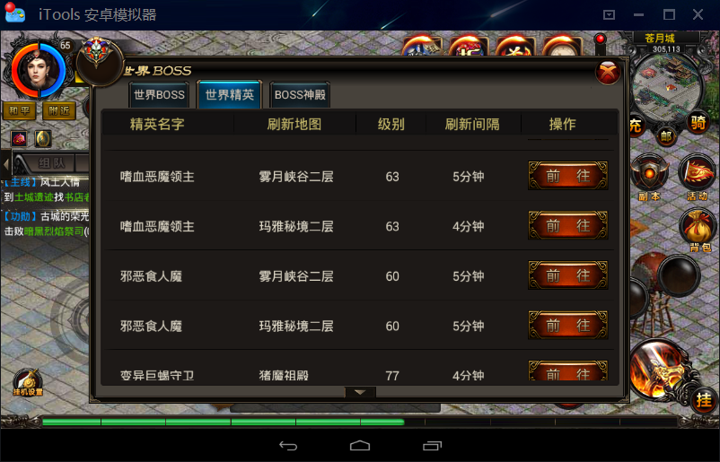 在主界面右侧小地图的下方,点击世界BOSS按钮可以打开世界BOSS界面。