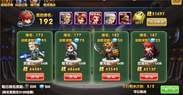 防守:在你着急提升排名的同时,一定不要忘记了防守阵容的随时更新,这个是我们有时候会忽略的点,因为在梦梦打拼竞技场的时候还是不乏遇到那些防守阵容很菜很菜的主公哟,这个肯定是忘记弄了的,很严重的问题的呢~