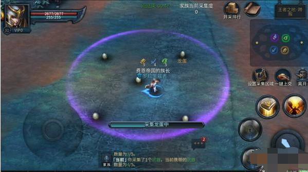 3、采集规则:采集期间,家族成员可以前往“王者之地”地图指定资源采集区采集资源。并随时在本方安全区的NPC处,上交资源使本家族的采集度增加。活动结束后,整个家族成员根据个人采集度获得相应奖励。在采集期间,各位勇士也可在王者之地击杀敌对阵营的玩家,抢夺其身上携带的资源,并给本方家族增加总采集度哦。