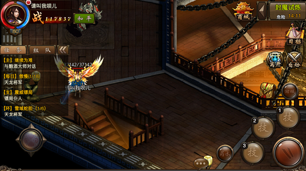 试炼妖塔是个小型的单人副本,每天可以进入3次,点击右上角“目标”--“单人副本”--“封魔试炼”即可进入试练塔。
