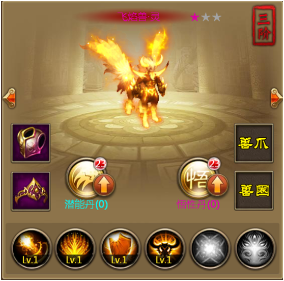 宠物可以进阶。目前的进阶开放到6阶,每进1个品阶,人物的战斗力都会得到巨额提升,而且获得更酷炫的宠物外形。
