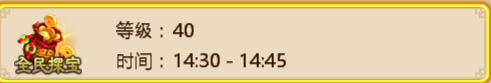 系统将在每天14:30-14:45开启全民探宝活动,在这期间,等级达到40级的玩家点击主界面“全民探宝”图标,即可进入活动地图。寻宝之旅,由此开始!