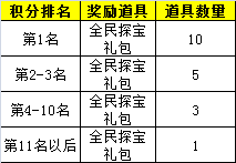 同时,根据积分,系统还会为玩家们送出积分排名奖励,其奖励规则如下: