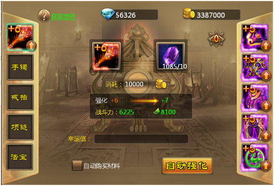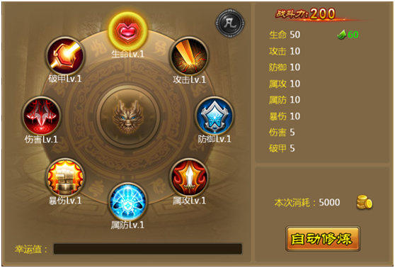 3、强化消耗强化石,强化失败不掉级,每次强化都会获得幸运值,幸运值越高越容易强化成功,成功后幸运值清零;