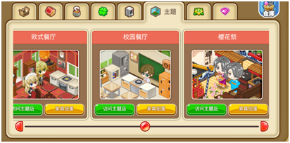 此外,还增加了展示用的主题餐厅,通过“访问主题店”的按钮就可以进入啦,效果一览无余,大家可以以此为参考,摆出最漂亮的主题餐厅呢~
