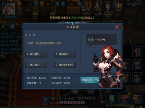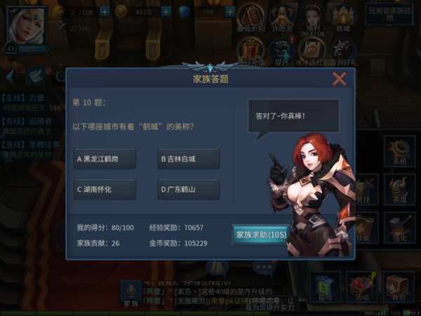 很简单了,每天10个答题,对了经验多,贡献多 ~日常任务也有指引来做这个