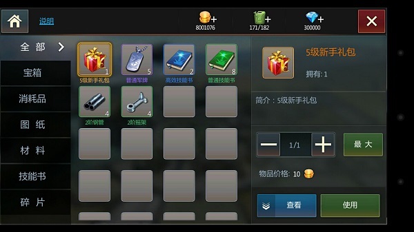 材料:材料是用来升级坦克所需要的零件(包含坦克改造.部件升级所用道具)。