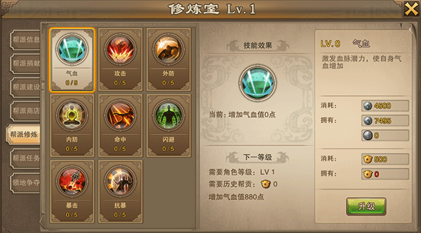 4、 帮派修炼