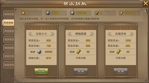 1、 帮派捐献