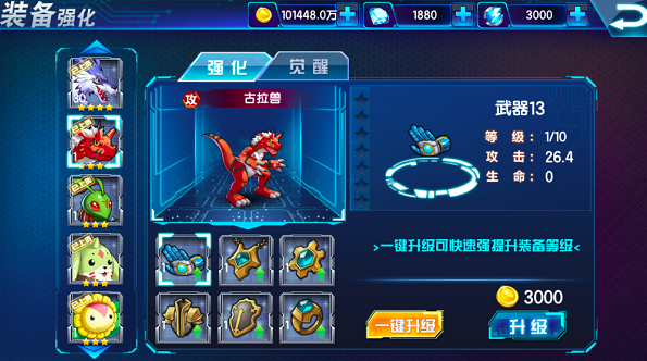 数码宝贝大冒险装备系统详解,数码宝贝大冒险中装备有很多类型,每个类型的装备会对数码宝贝的不同属性有加成,小编就来详细介绍一下数码宝贝大冒险中的装备系统和不同装备类型的不同作用。