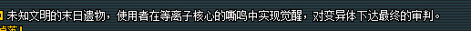 第一,末日遗物,这说明变异体不是这个时候出现的新有产物,而早在远古,或者更早的时期已经存在了“变异体”,为了消灭“变异体”古时候的人物创建了这把武器,所以可以从这把武器的外观中看的出,科技感不足,似乎还有些生锈,还有一些布袋的链接,上面的一些纹路也显得有点陈旧与神秘,而其还附带了觉醒的功能,很符合远古时代传说武器的套路。