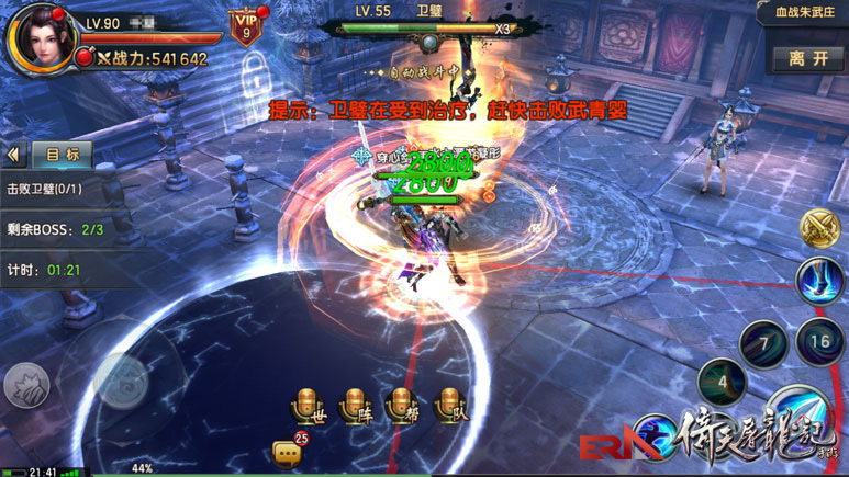 当卫璧血条剩至三条时,武青婴会自动为卫璧回血,这个时候要兵分两路,派出几人将武青婴击杀,切断回血来源。否则卫壁血量回复量将高于大家输出量,到头来只能做无用功而已~