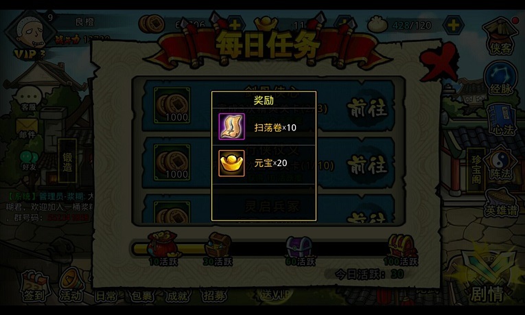 精英副本的扫荡会有次数限制,提升VIP等级会提高每日扫荡的次数上限。快利用扫荡功能飞速升级吧!