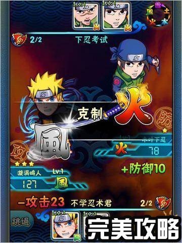 接下来就是游戏的战斗系统了,《我是火影》把忍术概念发挥的淋漓尽致,给人的感觉就是虽然你不曾看到过我出手,但你早已死在了我的剑下。游戏并没有特别华丽的攻击特效,但是本作把属性相克玩法深深的融入到了游戏的战斗系统中,每个忍者都会有一种属性,突出每个角色的特色天赋能力,小瞧我我就克死你。