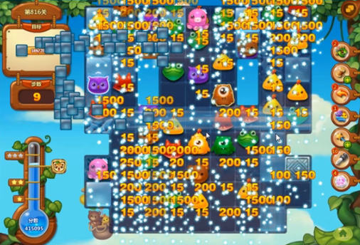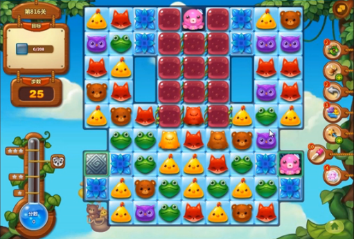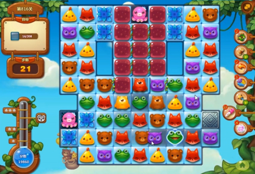 在最后的时候,剩余的冰块目标都是章鱼周边的死角,我们可以通关通关不断地消除独眼仔来释放出特征,然后达到消除的作用。魔力鸟制作出之后,还可以直接的消除冰块中的动物元素,这样就可以消除关卡中的目标了。