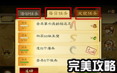 小编表示关于狂斩三国2任务,如果你是高等级玩家,貌似成就任务就不可错过,而对于新手玩家来说,这里的每个任务最好都要去做,特别是每日任务,你懂的,有钱有经验。