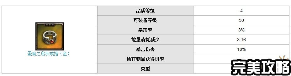 永恒战士3蚕食之启示戒指图鉴,这是30级别的橙色戒指,玩家们的需求不是很大,大多是26级别的橙色装备做过度,但是你要是刷出了也算是人品,下面我们来看看图鉴。 &nbs..