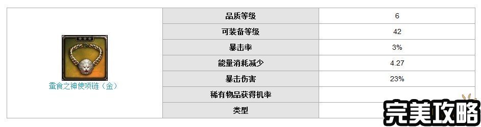 永恒战士3蚕食之神使项链图鉴,可装备等级42级别,橙色项链,极品的项链,目前来说虽然不是毕业的项链,但是属性也很优秀,下面我们来看看装备图鉴。