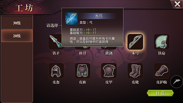 打造材料:青铜锭及轻皮,使用百斩钢可以提高打造品质