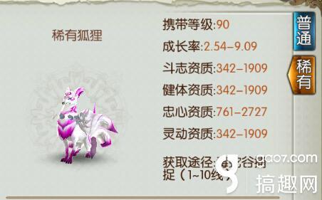 稀有狐狸携带等级90级,每次刷新时间大概在1小时左右,而且每次只刷一只!!