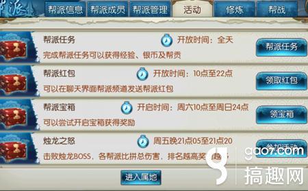 需要帮派等级2级以上,平均活跃度20以上才能进行。