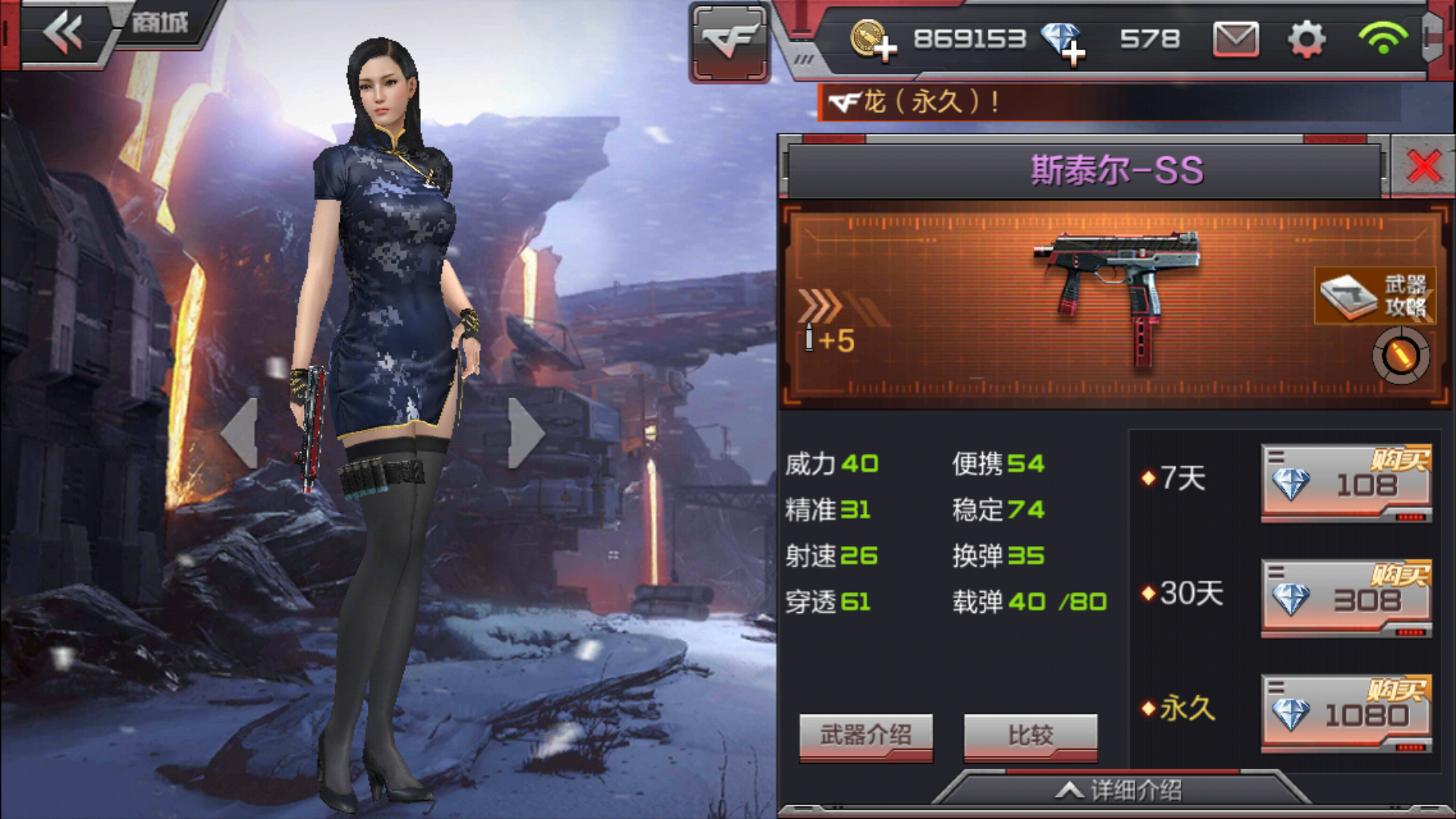 无论沙漠TD地图特点怎样,它毕竟还是团队竞技模式。只要是团队竞技,那么激烈的对抗总是无法避免的。当我们与敌人狭路相逢时,谁先开枪,谁就能占得先机。斯太尔-SS超高的射速和较轻的重量,可以让我们打完就跑,飘逸到极致。