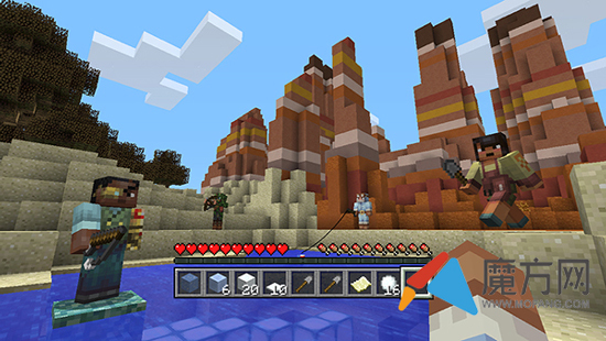 你还可以得到亚历克斯和史蒂夫穿着兽皮和末影人斗篷(披风)!皮肤将在今天开始可以在win10版本与PE版本中获取,主机平台的话,是明天。